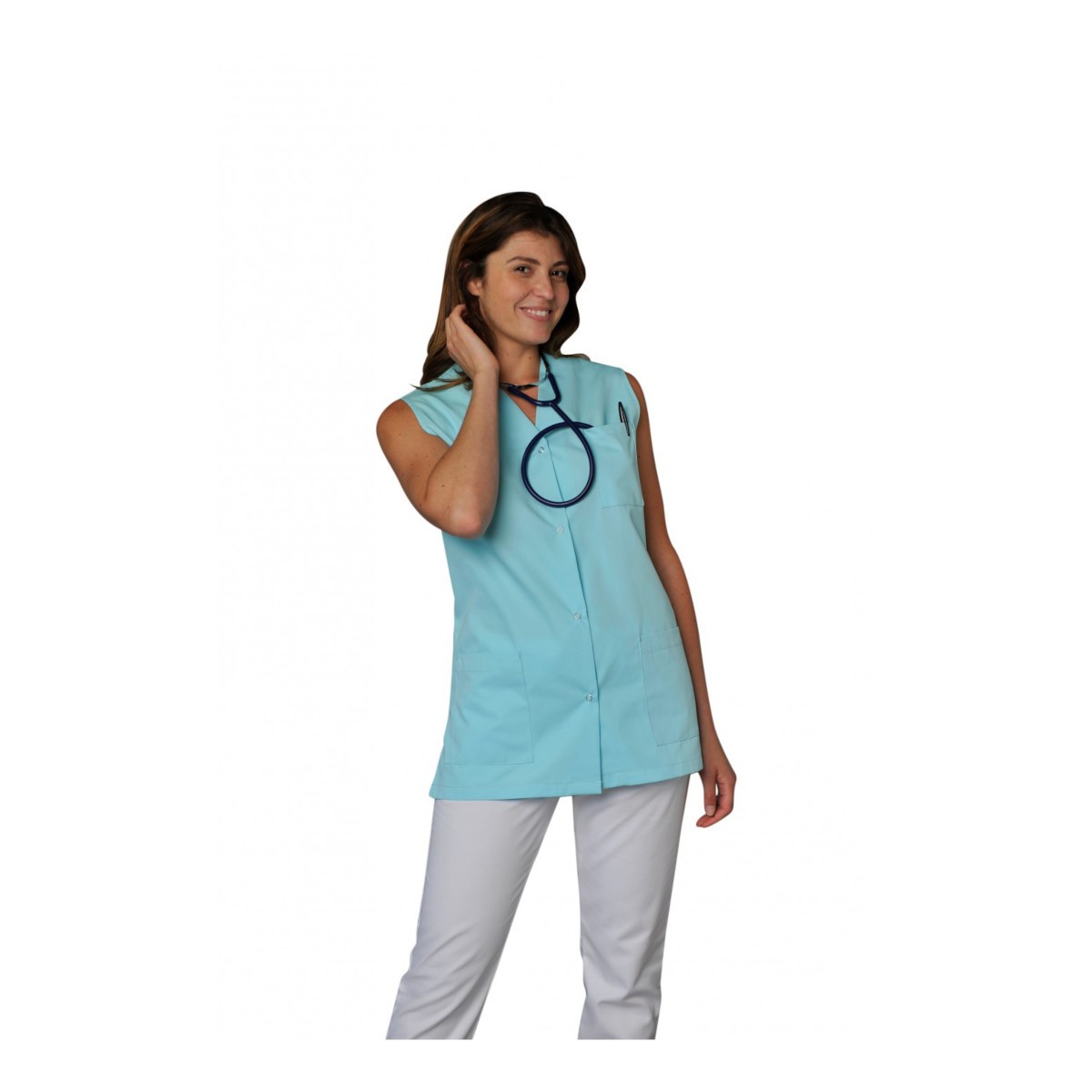 Sans Manche Pressions cachées Hauteur dos : 72cm 1 poche stylo Polyester 65% coton 35% Lavable 60°